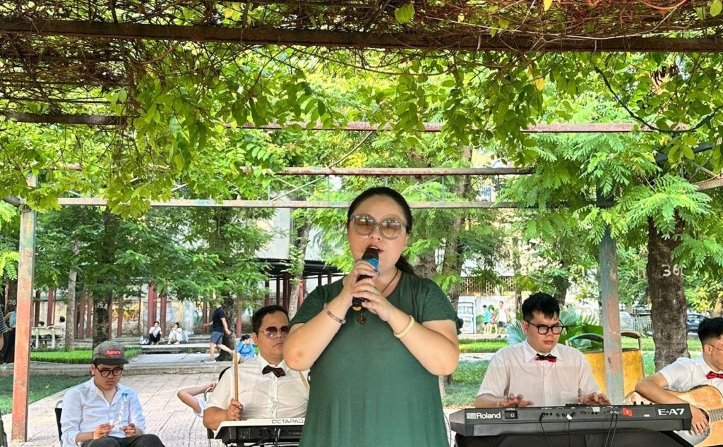 Ảnh: chị Thảo Đan và nhóm nghệ sĩ khiếm thị